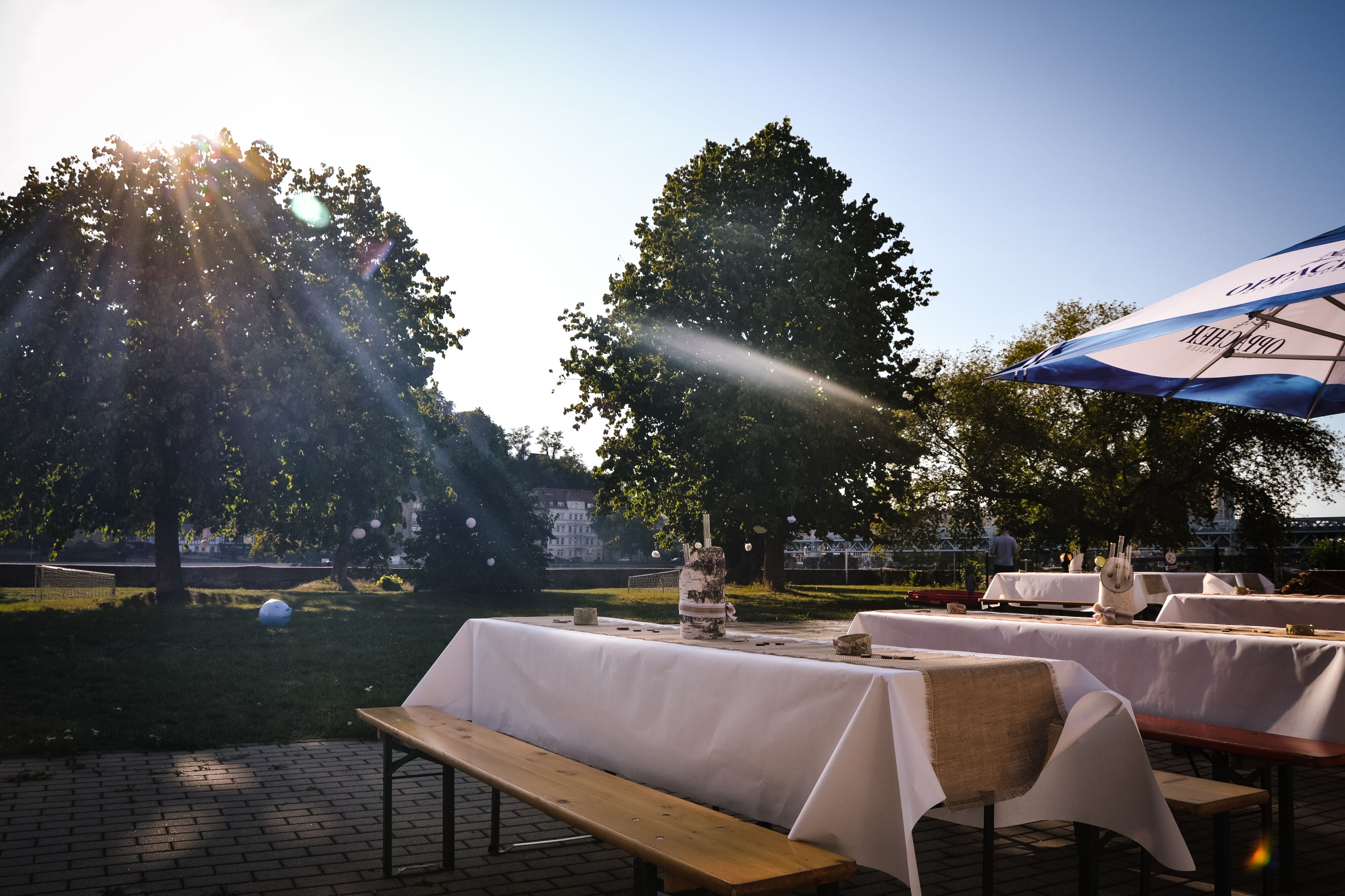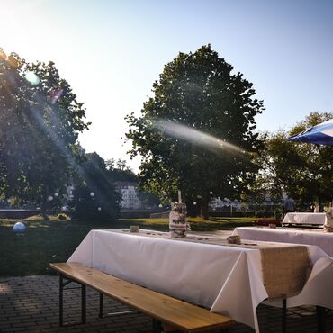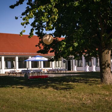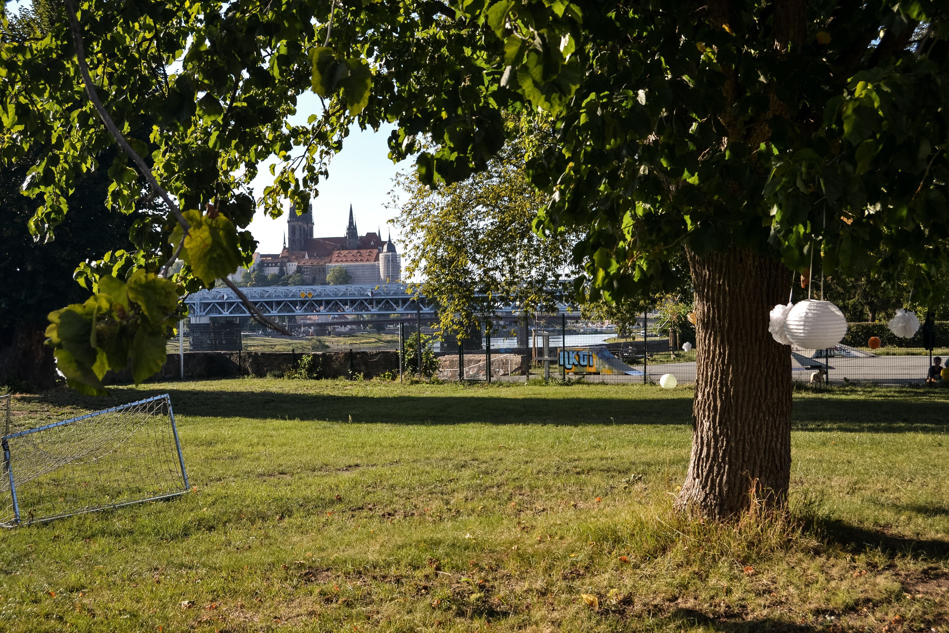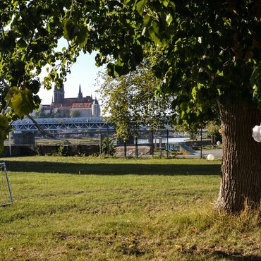 Großes Außengelände an der Elbe mit Burgblick.