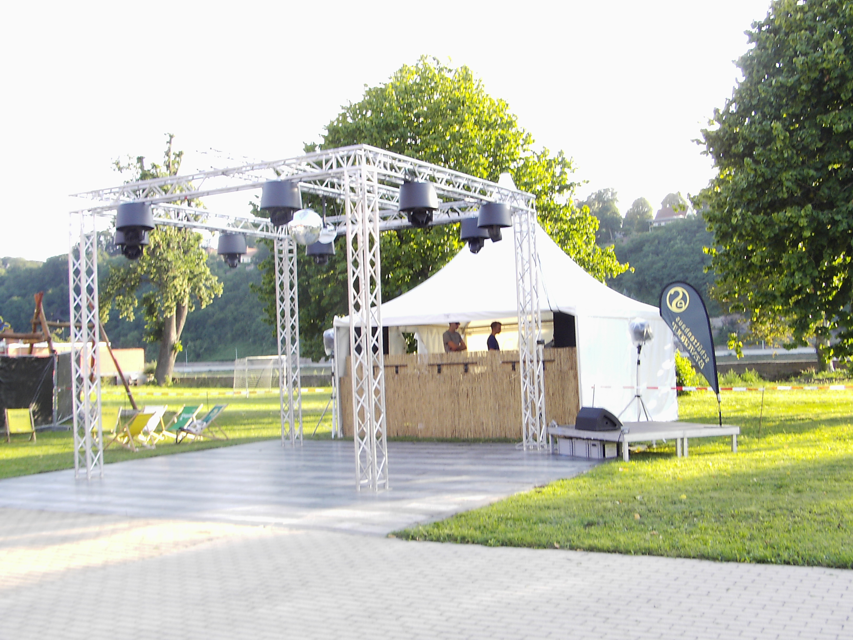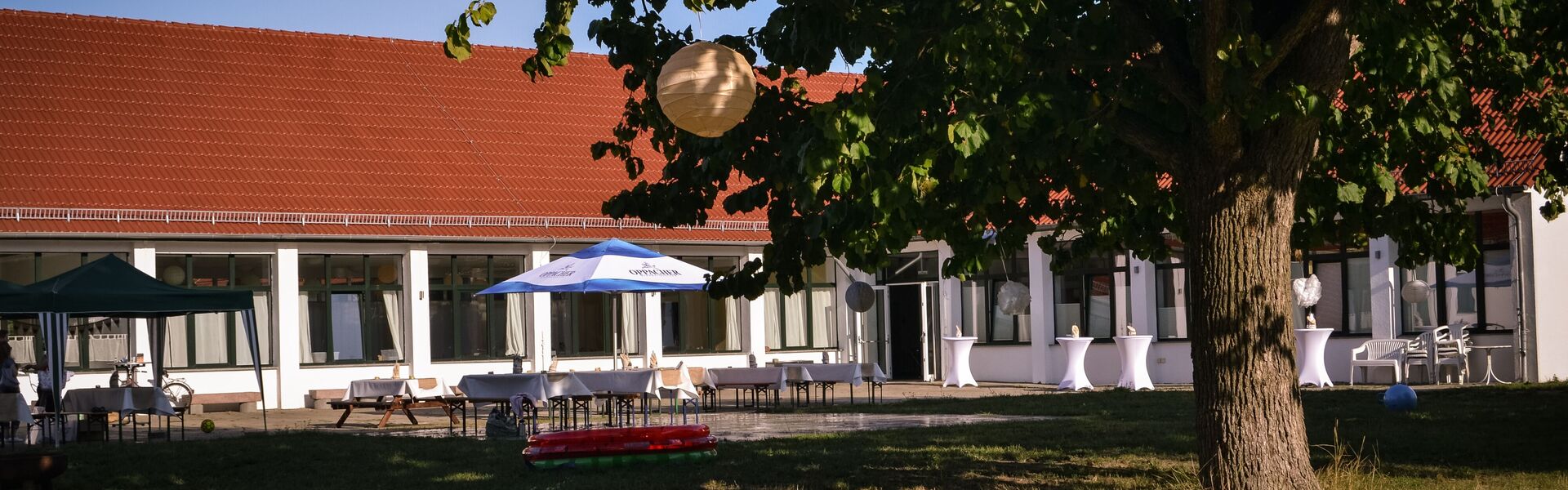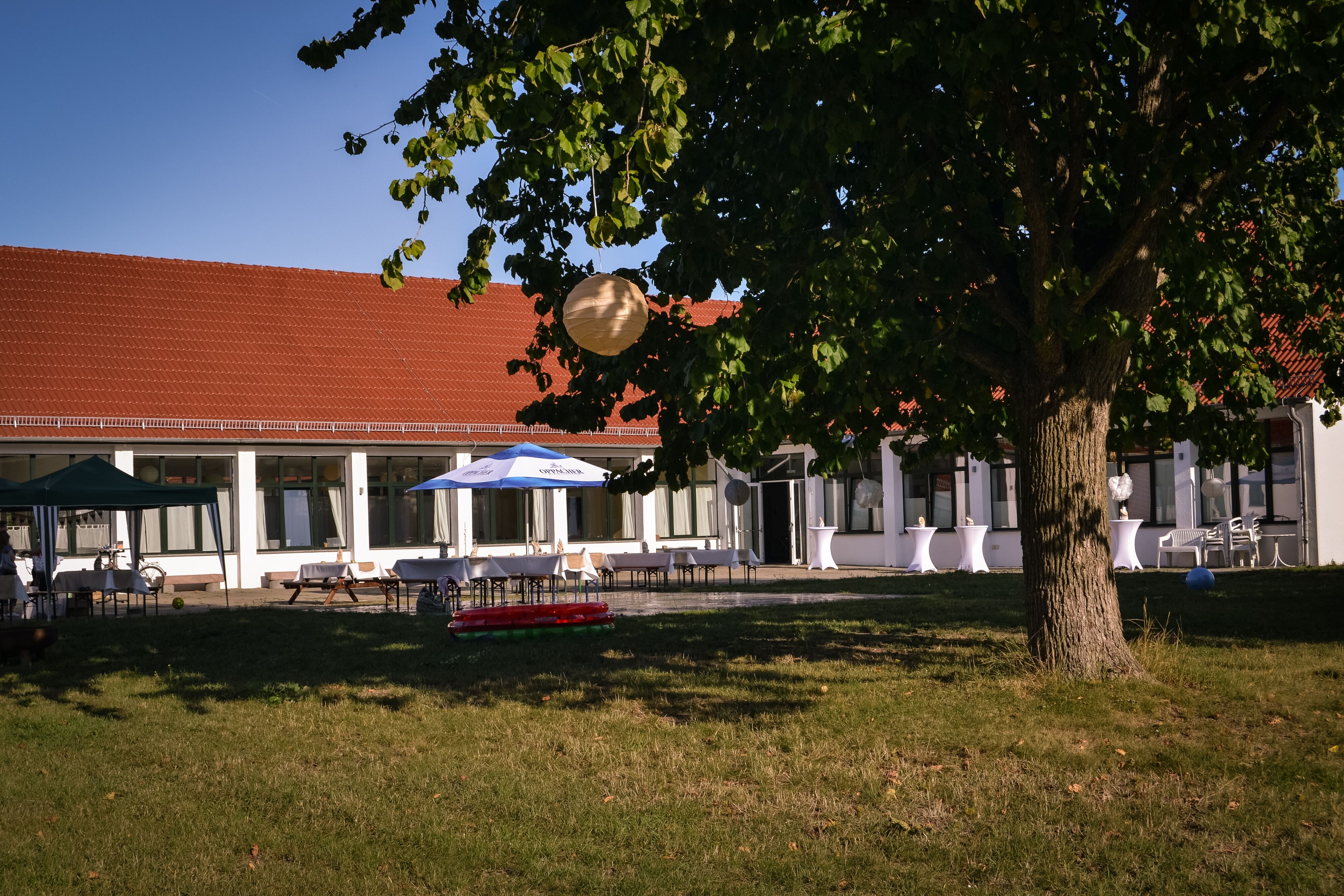 Großes Außengelände an der Elbe mit Burgblick.